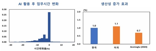 (서울=연합인포맥스) 정선미 기자 = 생성형 인공지능(AI)을 활용할 경우 약 1% 정도의 잠재적인 생산성 향상 효과가 나타나는 것으로 추정됐다.