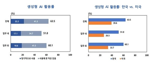 국내 근로자 중 생성형 온라인카지노 벌금 벳무브를 한 번이라도 사용한 비율은 63.5%에 달했고, 정기적 사용자는 22.2%, 시험적 사용자는 41.3%를 나타냈다.