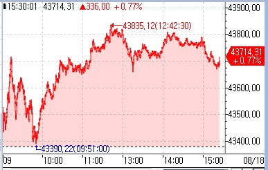 연합인포맥스 세계주가지수(6511)에 따르면 닛케이225 지수는 전 거래일 대비 336포인트(0.77%) 상승한 43,714.31에 거래를 마감했다.