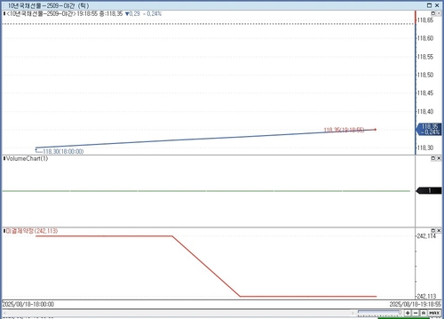 (서울=연합인포맥스) 피혜림 기자 = 국채선물이 18일 야간 거래에서 소폭 상승했다.