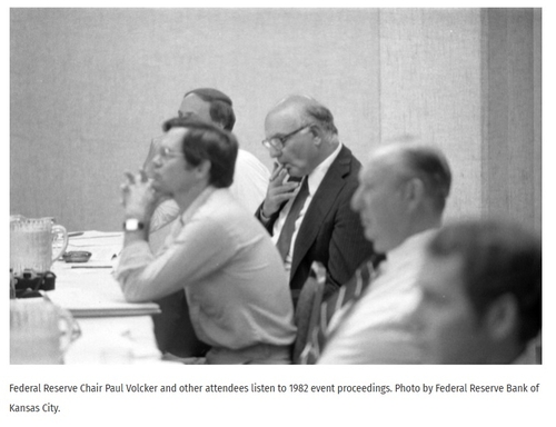이 해 심포지엄 주제는 통화정책으로 확장됐는데 당시 캔자스시티 연은 총재였던 로저 거피가 연준 의장이었던 폴 볼커를 초대하고, 볼커가 이를 수락하면서 심포지엄은 큰 전환기를 맞게 된다. 낚시광인 볼커의 관심을 끌기 위해 주최 측이 송어 낚시로 유명한 안전한 온라인카지노로 장소를 옮겼다는 후문이다. 이후 연준 관계자들과 전 세계 중앙은행 관계자들이 참석하기 시작했다.