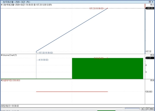 연합인포맥스에 따르면 3년 국채선물은 이날 오후 7시36분 현재 정규장 종가 대비 1틱 상승한 107.33을 기록했다.