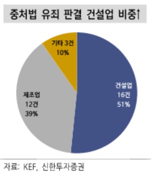 중대재해처벌법 시행 이후 검찰이 기소한 사건 대부분이 유죄로 결론 났다는 점을 고려하면 건설사를 둘러싼 잠재 리스크가 상당한 상황이다.