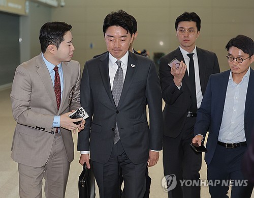 강 비서실장은 미국행의 이유와 배경을 묻는 취재진의 거듭된 질문에도 "갔다 와서 말씀드리겠다. 양해해 달라"는 말만 반복했다.