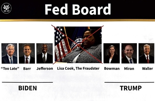 (뉴욕=연합인포맥스) 최진우 특파원 = 도널드 트럼프 미국 대통령이 리사 쿡(Lisa Cook) 연방준비제도(연준·Fed) 이사에 대한 압박 수위를 점점 높여가고 있다.
