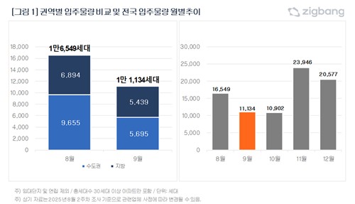 전국 아파트 입주물량은 총 1만1천134세대로 8월(1만6천549세대)보다 약 33% 감소할 예정이다.