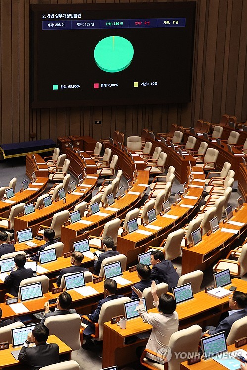 (서울=연합인포맥스) 박경은 기자 = 이른바 '더 센 상법개정안'이 통과되자, 증권가에서는 소액 주주 의결권 강화로 기업 지배구조의 질적 변화를 촉발할 수 있다며 환영했다.