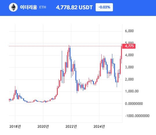 연합인포맥스 크립토종합화면(2550)에 따르면, 오전 9시22분 현재 이더리움은 4,778.82달러에 거래됐다.