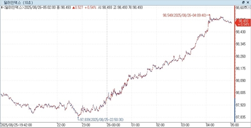주요 6개 통화에 대한 온라인카지노 벌금 유니88벳 가치를 반영하는 온라인카지노 벌금 유니88벳인덱스(DXY)는 제롬 파월 연방준비제도(연준·Fed) 의장의 잭슨홀 심포지엄 발언 재평가 움직임 속에 프랑스 정국 불안에 따른 유로 약세가 겹치면서 98대 중반까지 회복했다.
