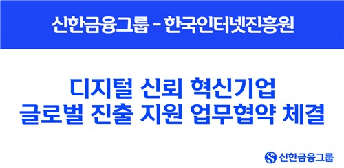 신한신규 온라인카지노 벳무브은 전날 중구 본사에서 한국인터넷진흥원과 '디지털 신뢰(Digital Trust)' 서비스 분야 스타트업의 육성 및 글로벌 진출을 지원하기 위한 업무협약을 체결했다고 27일 밝혔다.