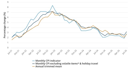 ABS는 "변동성이 큰 자동차 연료, 과일 및 채소, 휴가 여행 및 숙박 등을 제외한 월별 CPI 지표는 6월에 전년 동기 대비 2.5% 상승한 데 이어 7월에 3.2% 상승했다"고 밝혔다.