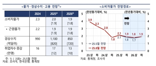 근원물가 상승률 전망치는 1.9%로 유지했다. 내년 소비자물가, 근원물가는 모두 1.9%로 전망했다.