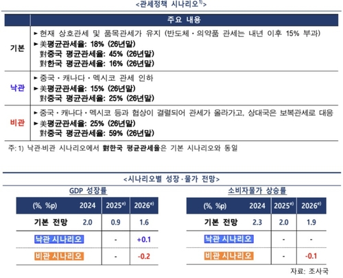 비관 시나리오는 무역갈등이 재점화돼 미국과 앞서 언급된 국가들과의 협상이 결렬되고 이들 국가도 보복관세로 대응하는 상황이다. 이렇게 되면 내년 온라인카지노 온카판이 기본 전망 대비 0.2%p, 물가상승률은 0.1%p 더 낮아질 것으로 봤다.