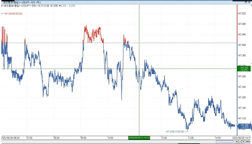 달러-엔 환율은 오후 장에서 낙폭을 확대해 한때 0.22% 내린 147.078엔까지 떨어졌다.