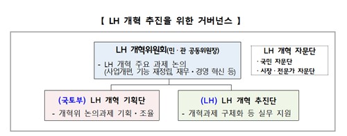 한편 개혁위원회 활동을 뒷받침하기 위해 국토부에 LH 개혁 기획단을, LH에는 LH 개혁 추진단을 각각 설치·운영한다.