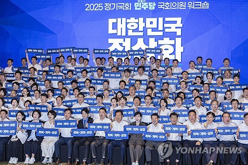 이날 민주당 워크숍에는 강훈식 대통령실 비서실장, 김용범 정책실장, 우상호 정무수석, 하정우 AI미래기획수석 등 대통령실 인사들이 다수 참석했다.