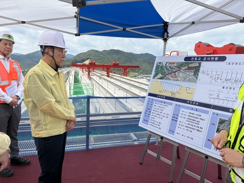 김 장관은 건설장비인 런처 작업절차와 안전관리 현황을 보고 받고 "지난 2월 세종안성 고속도로 붕괴사고 사례를 토대로 세부 작업절차와 기준 위반이 엄청난 결과를 초래할 수 있다는 점을 공사 시행 과정에서 지속적으로 염두에 둬야 한다"고 말했다.