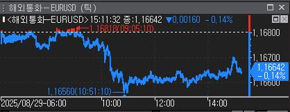 유로-달러 환율은 오후 3시 12분 현재 전장보다 0.14% 하락한 1.16642달러에 거래됐다.