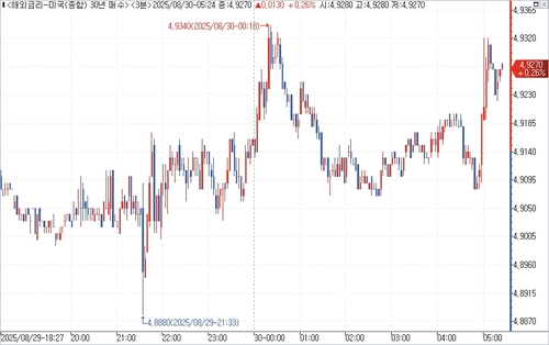 만기가 가장 긴 30년물 국채금리는 4.9170%로 4.30b 상승했다.