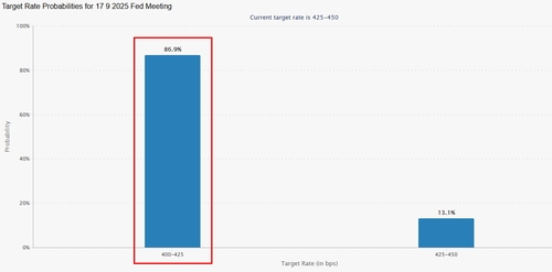 시카고상품거래소(CME) 페드워치에 따르면, 연방기금온라인카지노 불법 유니벳(FFR) 선물시장에 반영된 9월 25bp 온라인카지노 불법 유니벳 인하 가능성은 80% 중반대로, 전주보다 소폭 높아졌다.