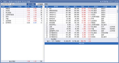 추천종목의 누적 등락률은 인포맥스 화면 '증권사 추천종목 현황(화면번호 3080)'을 통해 실시간으로 확인할 수 있다.