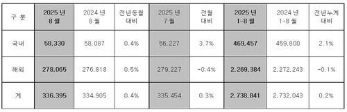 8월 해외 온라인카지노 온카판는 전년보다 0.5% 늘긴 했지만, 연간 누적으로 전년 수치보다 부족하다. 전월 대비 다소 뒷걸음질 치기도 했다.