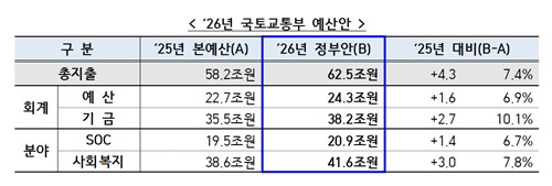 국토부는 국토교통 안전, 주거 및 교통 민생안정, 균형발전 등을 지원하기 위해 2026년 예산안을 62조5천억원으로 편성온라인카지노 총판 벳위즈고 2일 밝혔다.