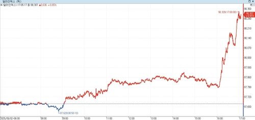 2일 연합인포맥스 해외주요국 외환시세(6411)에 따르면 주요 6개국 통화 대비 달러 가치를 나타내는 달러 인덱스는 이날 오후 5시4분 기준 전장 대비 0.65% 상승한 98.307을 기록했다.
