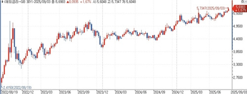 연합인포맥스(화면번호 6531)에 따르면 영국 국채 30년물 금리는 5.6983%로 5.72bp 상승해 1998년 이후 최고치를 경신했다.