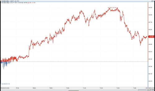 달러-엔 환율은 오후 장에서 148.920엔까지 오른 뒤론 우하향으로 방향을 틀어 상승 폭을 축소해 나갔다.