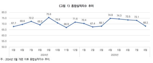 한국건설산업연구원은 8월 건설기업 경기실사지수(CBSI)가 전월 대비 4.9포인트 하락한 68.2를 기록했다고 4일 밝혔다.