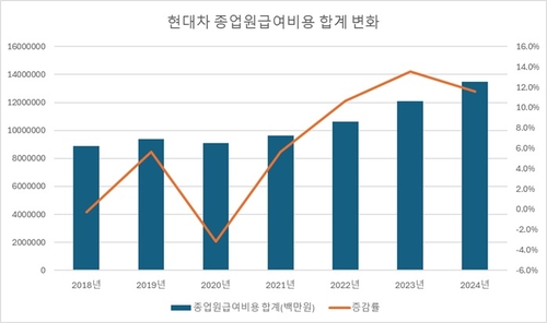 4일 메이저카지노사이트 사업보고서에 따르면 작년 매출원가, 판매비와 관리비 및 기타 비용에서 차지한 종업원급여 비용 합계는 13조4천796억원으로 집계됐다. 모든 직군의 기본임금과 상여금, 퇴직금, 각종 복리후생비를 합산한 수치다. 2022년부터 10조원대로 올라섰다.