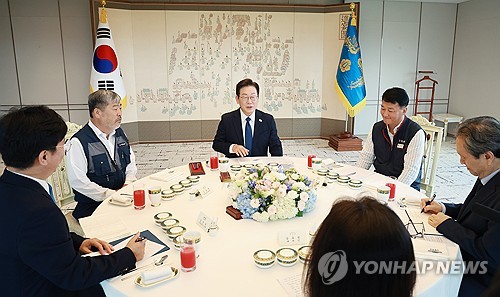 이 대통령은 "노동계 전체 입장에서 보면 좋은 일자리가 자꾸 사라진다. 다 비정규직화 되고 사회 전체가 불안정해지니 노동자들 입장에서는 해고는 죽음이다, 이런 소리를 할 수밖에 없는 악순환"이라며 "이걸 풀려면 대화하고 신뢰하고 조정해야 하는데 그 첫 출발이 마주 앉는 것"이라고 강조했다.