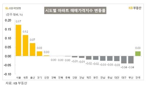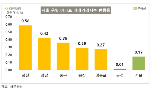 5일 KB국민은행 KB카지노 게임 사이트의 '9월 1주 전국아파트시장 동향'에 따르면 서울 아파트 매매가격은 한 주간 0.17% 올랐다.