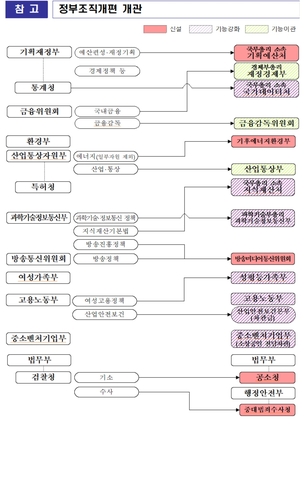 이에 정부 정책 효과성을 제고하고자 검찰과 기획재정부 등 특정 부처에 집중된 기능과 권한을 분산·재배치하고, 기후위기, AI 대전환 등 미래 위기에 선제로 대응하는 데 주안점을 줬다.