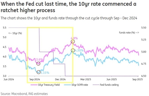 ING는 "금리가 4%선을 하회하려는 움직임을 보이지만, 이는 하방으로의 과도한 움직임일 가능성이 크다"며 "향후 몇 달 동안 더 높은 인플레이션 지표가 나오면 장기 금리에는 문제가 생길 수 있고, 상당한 반등이 뒤따를 것"이라고 내다봤다.