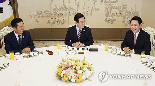 (서울=연합인포맥스) 정지서 기자 = 이재명 대통령이 8일 용산 대통령실에서 더불어민주당 정청래 대표, 국민의힘 장동혁 대표를 만나 협치를 위한 정치 복원을 강조했다.