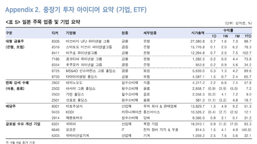 최보원 한국투자증권 연구원은 "자민당 총재 선거와 차기 총리 지명 선거가 진행되며 일시적으로 정치 불확실성이 확대될 가능성에는 유의해야 하나, 차기 총재의 정책 기대감이 부각될 것으로 예상한다"고 말했다.