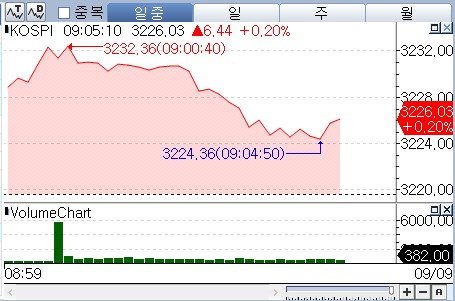 9일 연합인포맥스 신주식종합(화면번호 3536)에 따르면 코스피는 전 거래일보다 40.46포인트(1.26%) 오른 3,260.05에서 거래를 마쳤다.