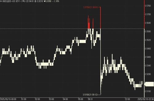 연합인포맥스의 해외금리 일중 화면(화면번호 6532)에 따르면 10일(미국 동부시간) 오전 8시 45분 현재 뉴욕 채권시장에서 10년물 국채금리는 전 거래일 오후 3시 기준가보다 0.40bp 내린 4.070%를 기록했다.