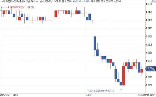 미 국채 유통시장에서 10년물 수익률은 뉴욕 오후 1시 조금 지나 입찰 결과가 나오자 낙폭을 확대하며 일중 저점(4.0240%)을 찍었다.