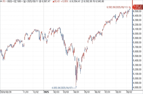S&P 600은 이날 역대 가장 높은 6,587.47에서 거래를 마쳤다. 6,800까지는 3.2% 남짓한 거리가 남아있는 셈이다.