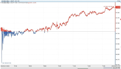 연합인포맥스 해외 주요국 외환 시세(6411)에 따르면 오후 1시 47분 기준 달러-엔 환율은 전장 대비 0.24% 오른 147.528엔에 거래됐다.