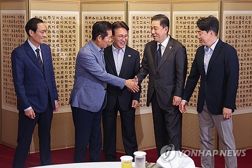 (서울=연합인포맥스) 정지서 기자 = 당정대(더불어민주당·정부·대통령실) 고위급 인사들이 14일 오후 서울 종로구 총리 공관에서 비공개 만찬 회동을 하고 정국 현안에 긴밀히 소통하기로 뜻을 모았다.