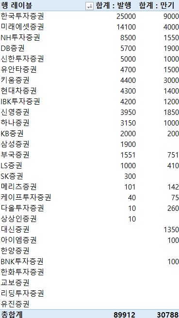 한국투자증권 9천억원, 미래에셋증권 4천억원의 만기가 도래한다.