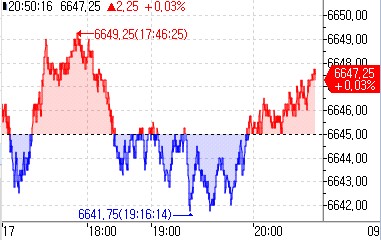 연합인포맥스 지수선물 통합화면(화면번호 6520)에 따르면 한국 시각으로 오전 10시50분 기준 E-미니 S&P500 지수 선물은 전장 대비 0.03% 오른 6647.25에 거래됐다.