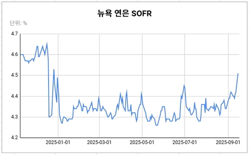(서울=연합인포맥스) 김성진 기자 = 미국 머니마켓의 벤치마크 금리 중 하나인 'SOFR(Secured Overnight Financing Rate)'이 분기 법인세 납부일이었던 지난 15일 급등하며 올해 들어 최고치를 기록한 것으로 나타났다.