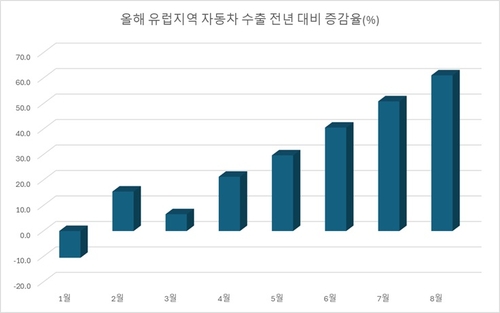(서울=연합인포맥스) 이재헌 기자 = 우리나라의 올해 자동차 수출은 건재하다. 최대 시장인 미국의 관세 부과에도 역대 최대 기록을 쓰고 있다. 내연기관, 하이브리드(HEV), 순수전기차(BEV)까지 고루 갖춘 경쟁력으로 미국 이외 시장에서 활동을 넓혔다. 유럽에서는 수년간 수출이 늘어나는 유일한 국가여서, 미국과 관세 협상 후속 협의 교착 때 버팀목이 될 것으로 진단됐다.