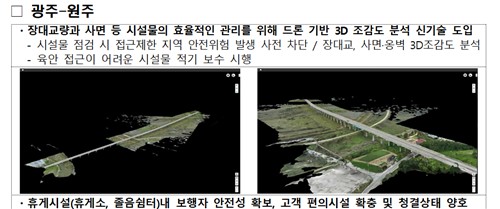 평가 결과 광주-원주(제이영동고속도로) 고속도로가 '최우수'를 받았다. 국토부는 광주-원주 고속도로가 교량 등 시설물 점검 시 드론 촬영 결과를 활용해 적기 보수한 점을 긍정적으로 봤다.