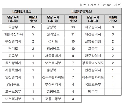공공의료기관의 요양병원 82개소 중 10개소만 참여했고, 5개소는 미연계, 67개소는 미참여 상태다. 정신병원 17개소는 단 한 곳도 참여하지 않았다.